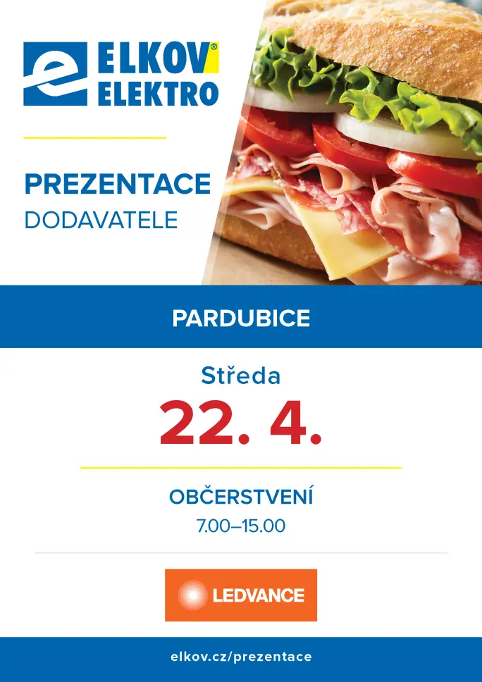 Zastavte se na naší pobočce v Pardubicích během dubnové prezentace dodavatele LEDVANCE. Čekají vás novinky, praktické ukázky a odborné poradenství a k tomu něco dobrého k snědku.