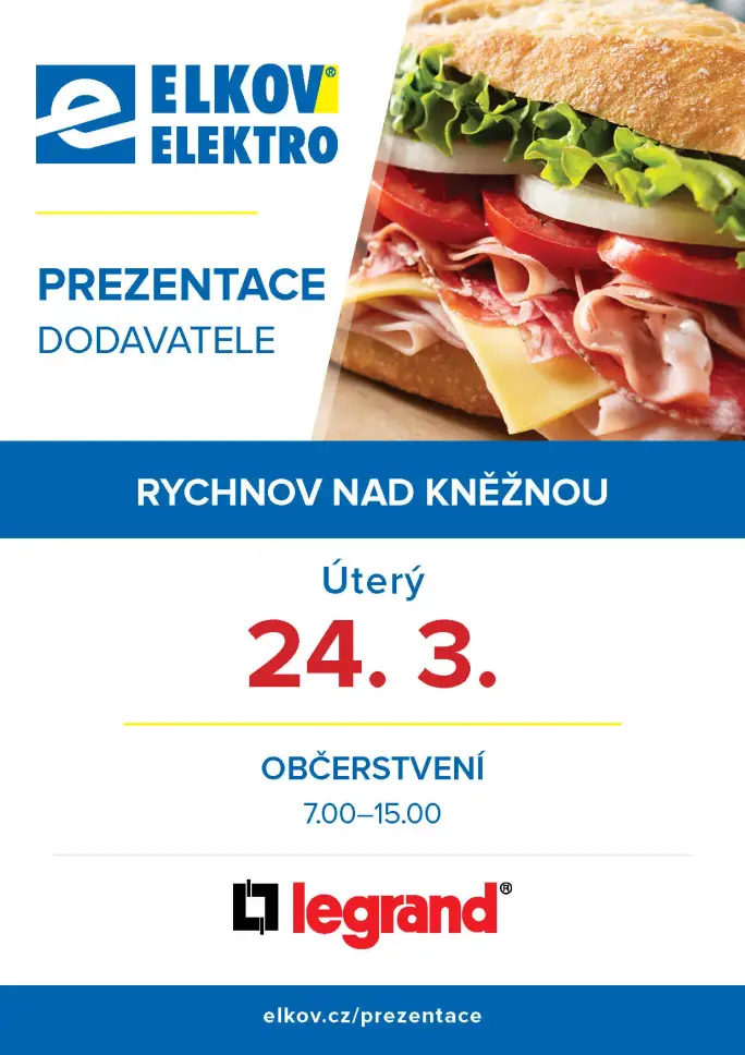 Zastavte se na naší pobočce v Rychnově během březnové prezentace dodavatele Legrand. Čekají vás novinky, praktické ukázky a odborné poradenství.