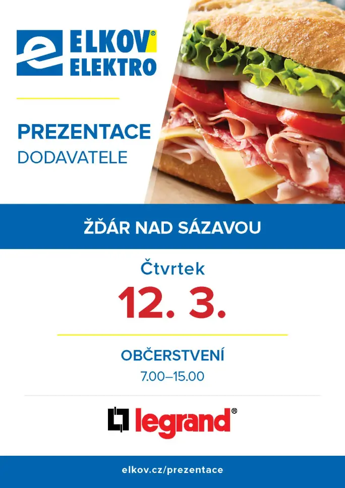 Zastavte se na naší pobočce ve Žďáře nad Sázavou během březnové prezentace dodavatele Legrand. Čekají vás novinky, praktické ukázky a odborné poradenství.