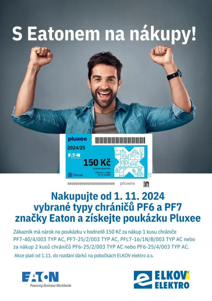 Nákupem vybraných typů chráničů PF6 a PF7 značky Eaton získáte poukázku Pluxee v hodnotě 150 Kč!
