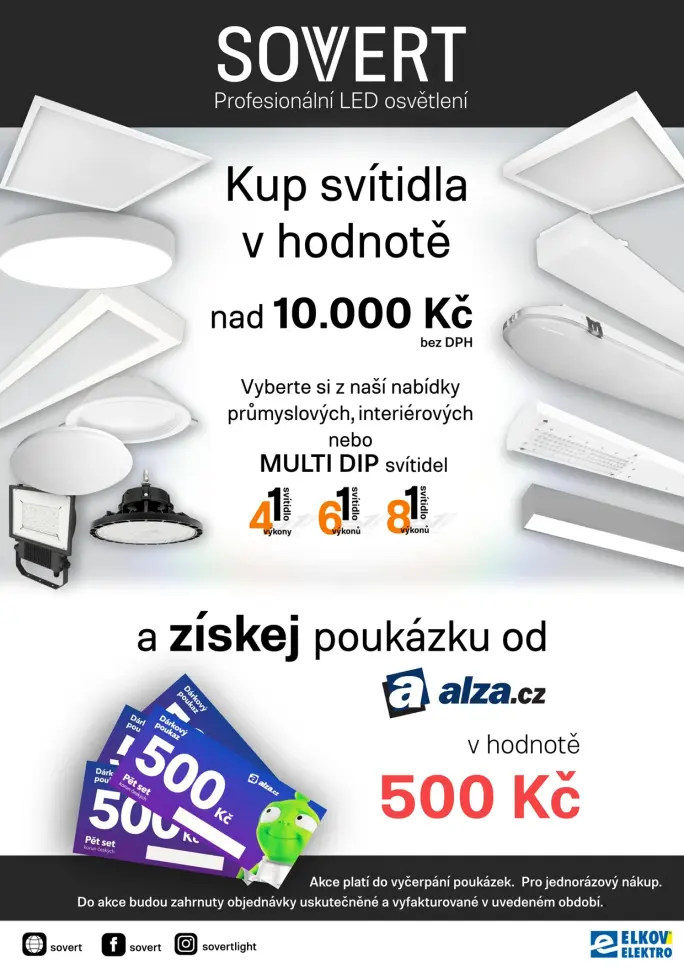 Nakup profesionální LED svítidla značky SOVERT v hodnotě nad 10 000 Kč bez DPH a jako odměnu získáš dárkový poukaz od alza.cz.