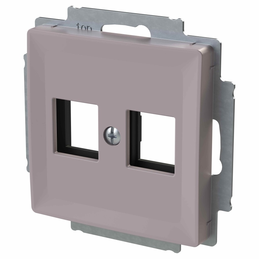 Kryt komunikační zásuvky ABB Zoni 5014T-A02018 244 v barvě greige umožňuje montáž dvou komunikačních nebo reproduktorových modulů a disponuje přímými vývody.