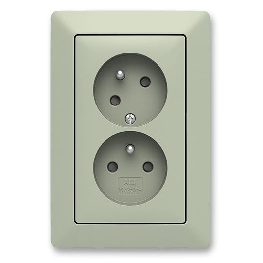 ABB Zoni 5513T-C02157 143 zásuvka dvojnásobná s ochrannými kolíky, s clonkami, s natočenou dutinou, olivová/bílá