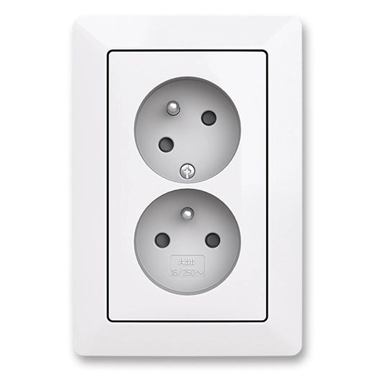 ABB Zoni 5513T-C02157 500 zásuvka dvojnásobná s ochrannými kolíky, s clonkami, s natočenou dutinou, bílá