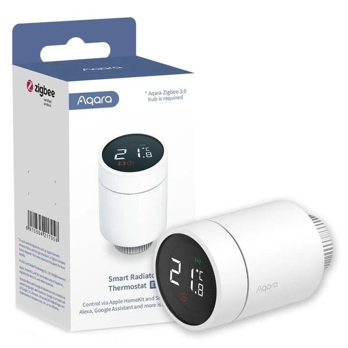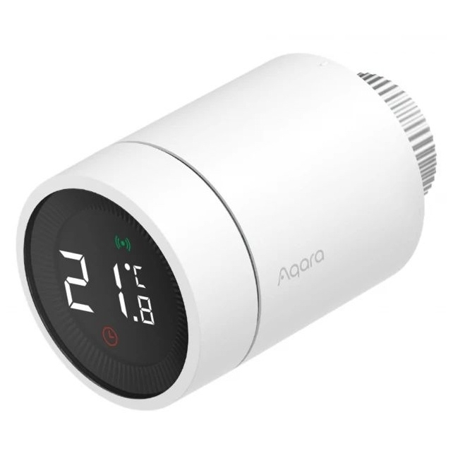 AQARA Radiator Thermostat E1 (SRTS-A01) využívá protokol Zigbee 3.0 a podporuje budoucí integraci Matter. Termostat lze spárovat s externím senzorem teploty a vlhkosti Aqara pro přesnější regulaci teploty. Disponuje funkcemi jako geofencing, detekce otevřených oken a dveří, automatizace počasí a ochrana proti zamrznutí. Instalace je rychlá díky adaptérům kompatibilním s ventily M30×1,5 mm a Danfoss RA, RAV, RAVL. Barevný podsvícený LCD displej zajišťuje přehledné ovládání a výdrž baterie dosahuje až jeden rok.