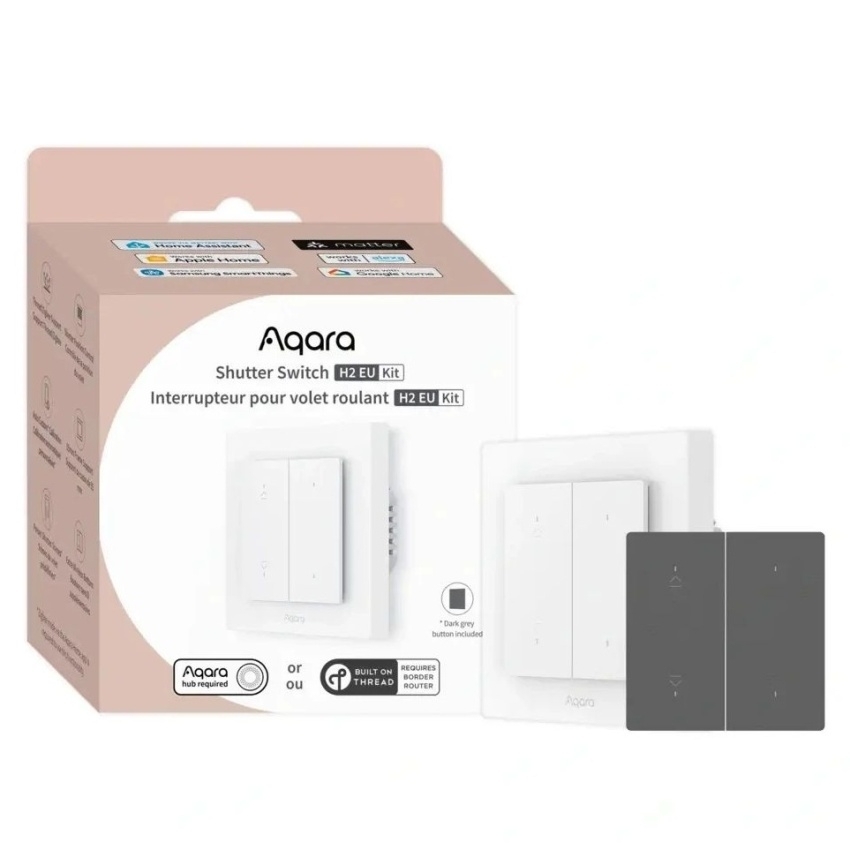 AQARA Shutter Switch H2 EU Kit (DS-K02D) nabízí inteligentní ovládání žaluzií a rolet s podporou dvou bezdrátových protokolů Zigbee a Thread, což umožňuje integraci do ekosystémů Matter i Aqara. Uživatelé mohou přesně nastavovat polohu stínění v rozsahu 1–100 % pomocí aplikace, hlasových příkazů, tlačítek nebo časových plánů. Zařízení podporuje chytrou kalibraci a programovatelná bezdrátová tlačítka pro spouštění scén a automatizací, přičemž design odpovídá standardu rámečků 55 mm pro snadnou instalaci v EU.