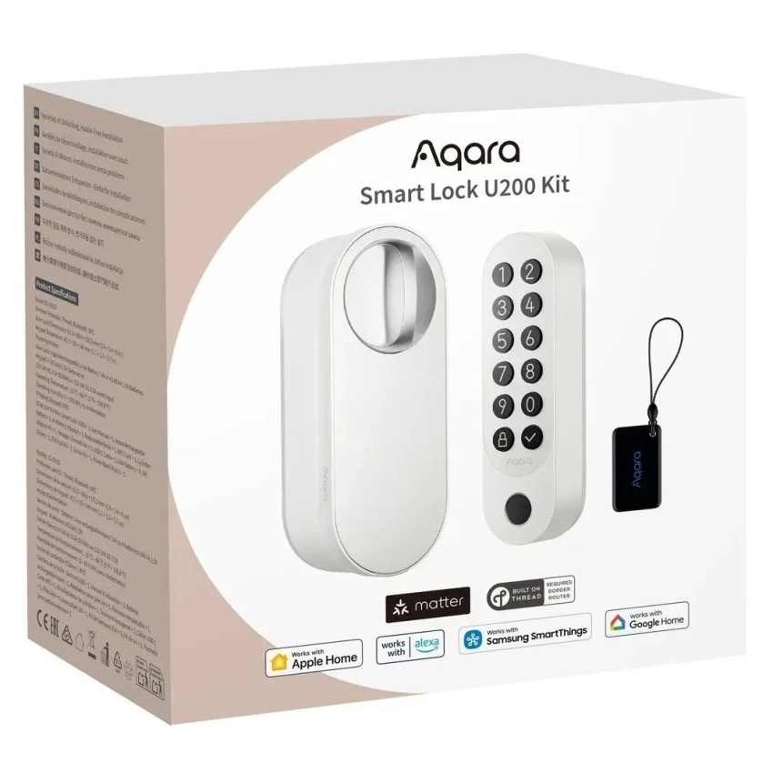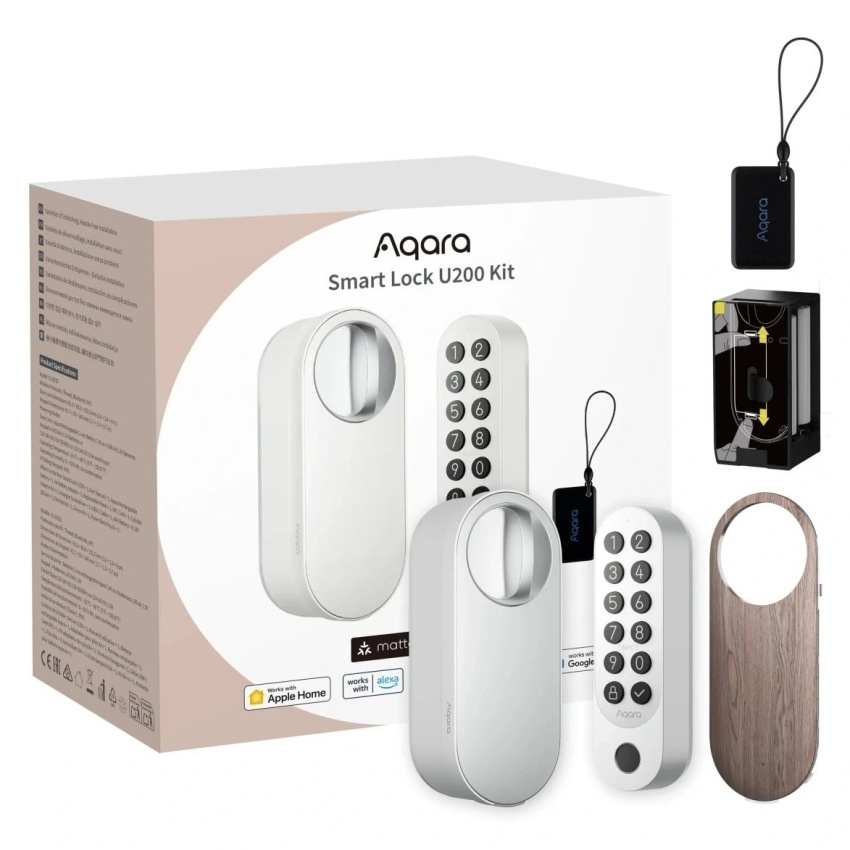 AQARA Smart Lock U200 Kit (Rev 2025) nabízí moderní zabezpečení dveří bez nutnosti vrtání díky snadné montáži na stávající zámek. Zámek podporuje více způsobů odemykání včetně otisku prstu, PIN kódu, NFC karty a Apple Home Key, přičemž komunikace probíhá přes Bluetooth 5.1 a Thread. Konstrukce zámku je odolná s krytím IPX5 a pracuje v rozsahu teplot od -15 °C do 66 °C, napájen je dobíjecí lithium-iontovou baterií s výdrží až šest měsíců, klávesnice je napájena bateriemi AAA nebo 12-24V AC/DC. Zámek je kompatibilní s euro profily a nabízí pokročilé funkce jako deník aktivit, automatické zamykání, režim Nerušit a ochranu PIN kódu proti odposlechu.