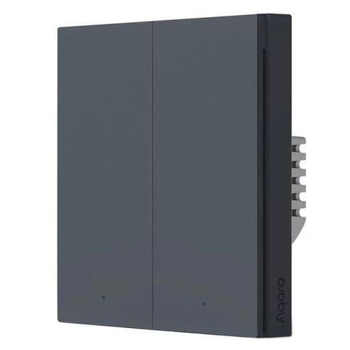 AQARA Smart Wall Switch H1 EU (No Neutral, Double Rocker) (WS-EUK02-G) je inteligentní nástěnný vypínač s dvoukanálovým relé založený na bezdrátovém protokolu Zigbee 3.0. Umožňuje dálkové ovládání a časové řízení osvětlení přes aplikaci Aqara Home a podporuje hlasové ovládání. Zařízení nevyžaduje neutrální vodič a je kompatibilní s EU verzí řídící jednotky Aqara Hub, která umožňuje integraci do systému Apple HomeKit.