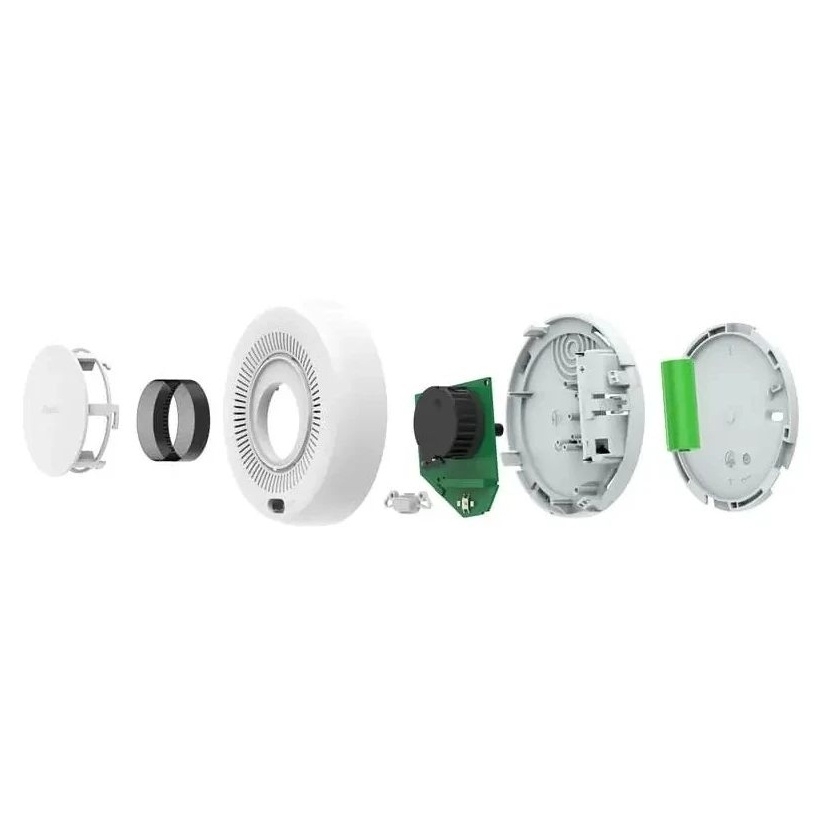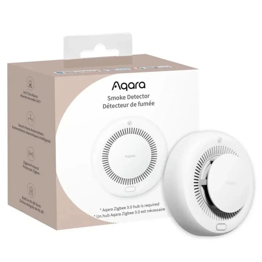 AQARA Smoke Detector (SD-S01D) je autonomní fotoelektrický detektor kouře, který při překročení nastavené prahové hodnoty spustí 85 dB zvukový a světelný alarm a okamžitě odešle upozornění do aplikace Aqara přes Zigbee hub. Zařízení podporuje lokální automatizaci a integraci s ekosystémy jako Apple HomeKit, Alexa, Google Home a dalšími díky protokolu Zigbee 3.0. Detektor umožňuje seskupení více zařízení pro simultánní aktivaci alarmu v celém domě a disponuje až 10letou výdrží baterie typu CR17450.