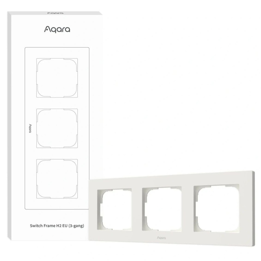 AQARA Switch Frame H2 EU (3-gang) (FE-X02D) je elegantní a minimalistický rámeček určený pro tři vedle sebe umístěné vypínače AQARA H2. Je vyroben v bílém provedení a je kompatibilní se standardními EU instalačními krabicemi o rozměrech 55×55 mm. Rámeček umožňuje rychlou montáž bez použití nářadí a je vhodný pro kombinaci s vypínači, zásuvkami, stmívači a žaluziovými ovladači AQARA H2, přirozeně zapadá do moderního interiéru.