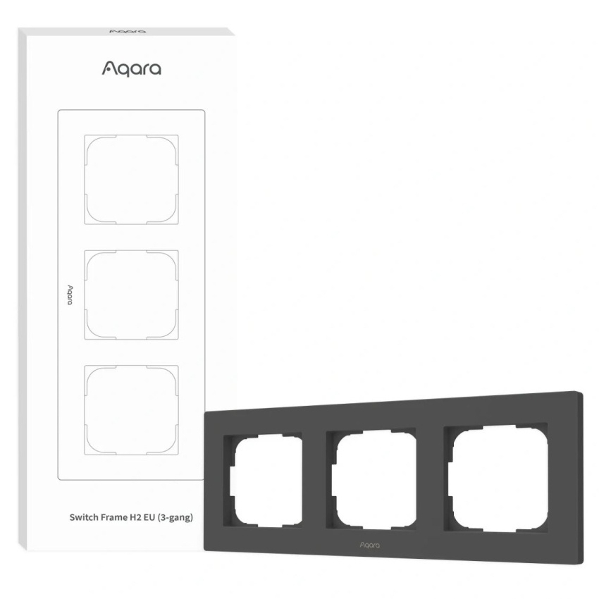 AQARA Switch Frame H2 EU (3-gang) (FE-X02DG) je elegantní a minimalistický rámeček v šedém provedení určený pro tři vypínače AQARA H2 umístěné vedle sebe. Rámeček je kompatibilní se standardními instalačními krabicemi o rozměru 55×55 mm a umožňuje rychlou montáž bez použití nářadí. Je ideální pro kombinaci s vypínači, zásuvkami, stmívači a žaluziovými ovladači AQARA H2 a přirozeně zapadne do moderního interiéru.