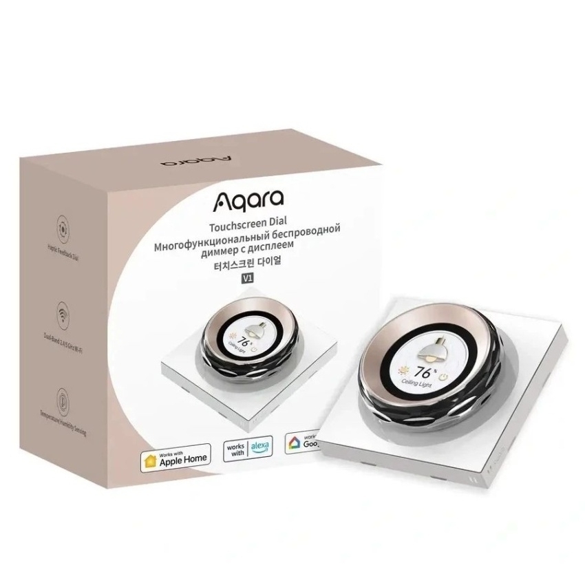 AQARA Touchscreen Dial V1 EU nabízí přesné ovládání pomocí haptické zpětné vazby, vibrací ITS a zvukových signálů. Zařízení obsahuje senzory pro měření vnitřní teploty a vlhkosti a aktivuje displej senzorem přiblížení, čímž minimalizuje světelné znečištění. Podporuje dvoupásmové Wi-Fi 2,4 GHz a 5 GHz, Zigbee a Bluetooth, umožňuje integraci s Apple HomeKit, Amazon Alexa a Google Home a nabízí přizpůsobitelné rozhraní s možností ovládání více zařízení a scén.