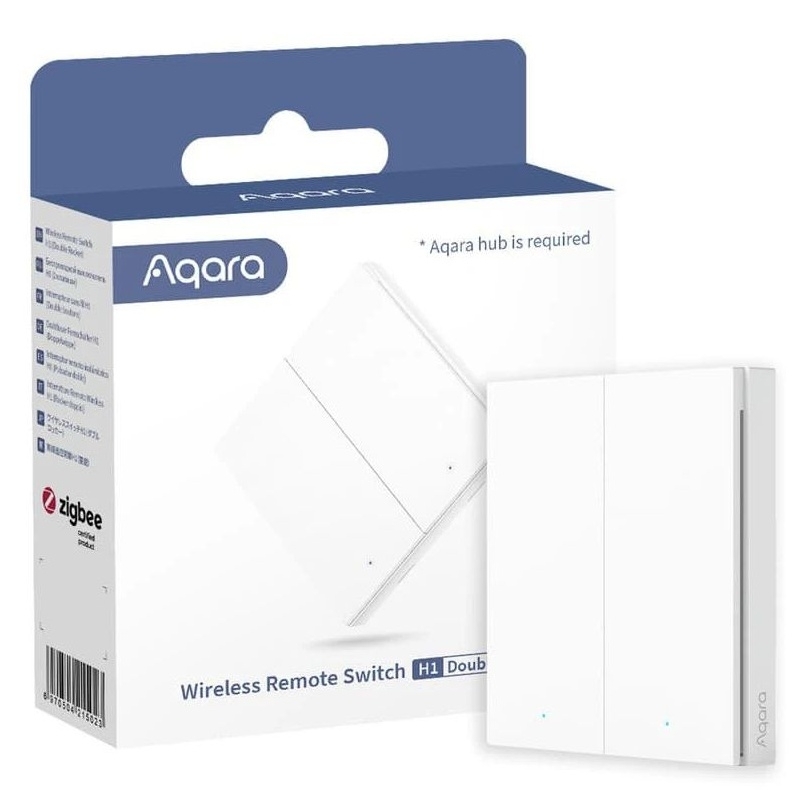 AQARA Wireless Remote Switch H1 Double Rocker (WRS-R02) je bezdrátový dálkový vypínač s dvěma tlačítky, který komunikuje přes Zigbee 3.0 protokol. Zařízení umožňuje ovládat světla a další chytrá zařízení pomocí jednoho, dvojitého kliknutí nebo přidržení tlačítka. Vypínač je napájen baterií CR2450 s výdrží až 2 roky a je kompatibilní s EU verzí Aqara Hub a Apple HomeKit prostřednictvím Aqara Hubu jako mostu.