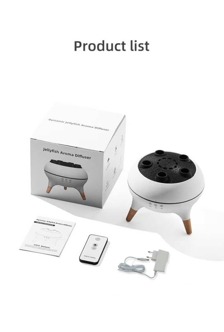 Aroma difusér Immax JELLYFISH (katalogové číslo 09104L) využívá ultrazvukovou technologii pro rozptylování esenciálních olejů a zároveň zvlhčuje vzduch v místnosti. Nabízí efekt „vznášejících se medůzek“ a LED podsvícení s proměnlivými barvami (RGB), součástí je dálkové ovládání a je k dispozici také režim reagující na hudbu. Má automatické vypnutí při nedostatku vody, příkon 11 W a napájení DC 24 V / 650 mA. Nádržka na vodu má objem 250 ml, objem rozprašování je 10–50 ml/h, rozměry jsou 16 × 16 × 14 cm a hmotnost 0,51 kg, stupeň krytí je IP20. V balení je aromadifusér, dálkové ovládání, napájecí adaptér a manuál.