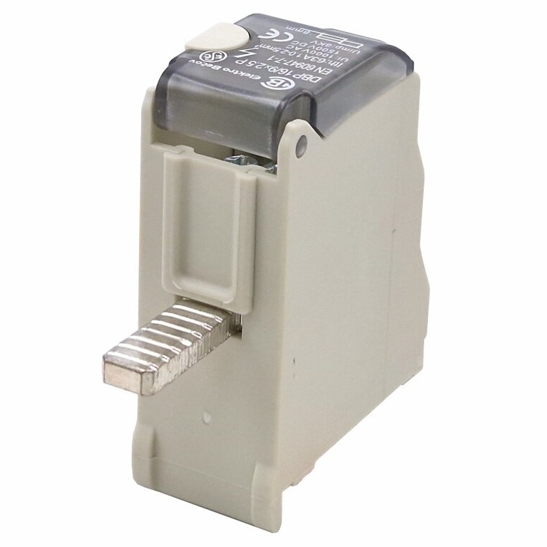Distribuční blok ELEKTRO BEČOV DBP 16/9x2,5 P má vstup pin, jmenovitý proud 63 A a výstup 9x 2,5 mm². Jmenovité napětí činí 1000 V AC / 1500 V DC.