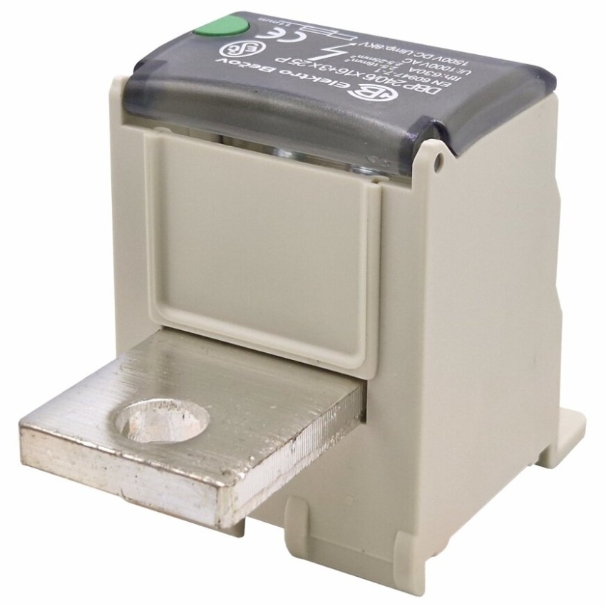 Distribuční blok ELEKTRO BEČOV DBP 240/6x16+3x25 P má vstup M10, jmenovitý proud 630 A a výstup 6x 16 + 3x 25 mm². Jmenovité napětí činí 1000 V AC / 1500 V DC.