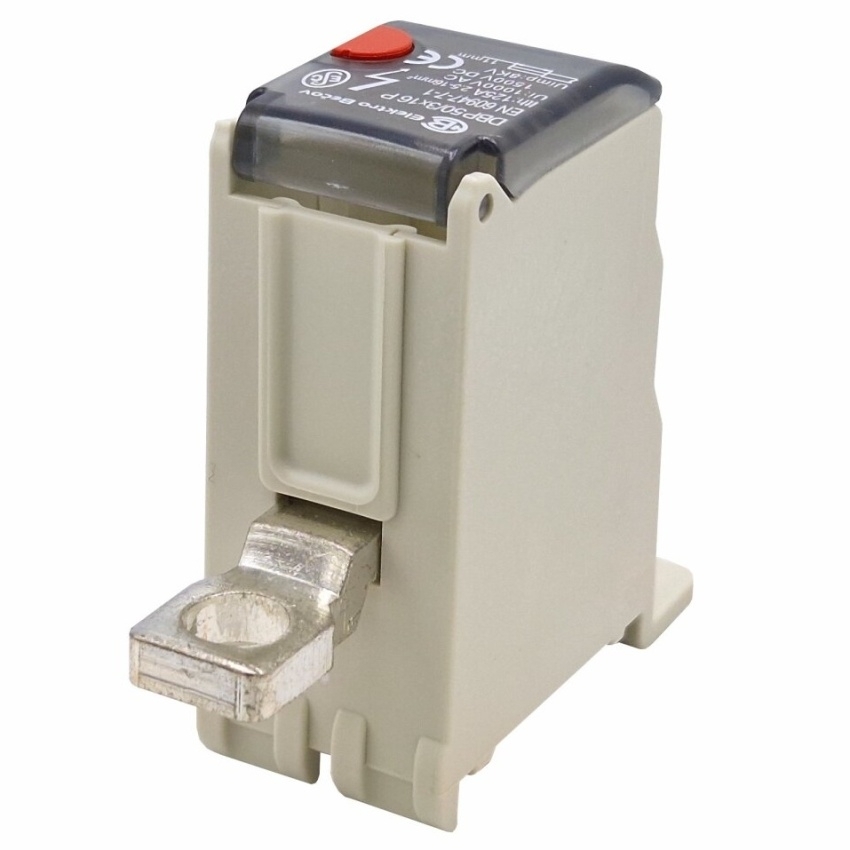 Distribuční blok ELEKTRO BEČOV DBP 50/3x16 P má vstupní pin M6, jmenovitý proud 125 A a výstup 3x 16 mm². Jmenovité napětí činí 1000 V AC / 1500 V DC.