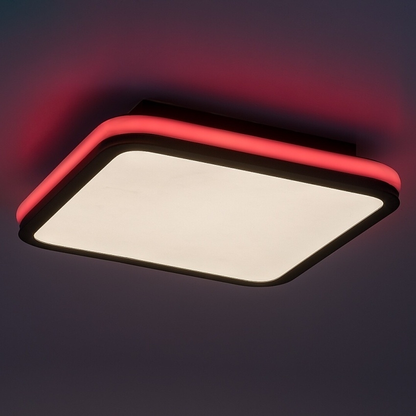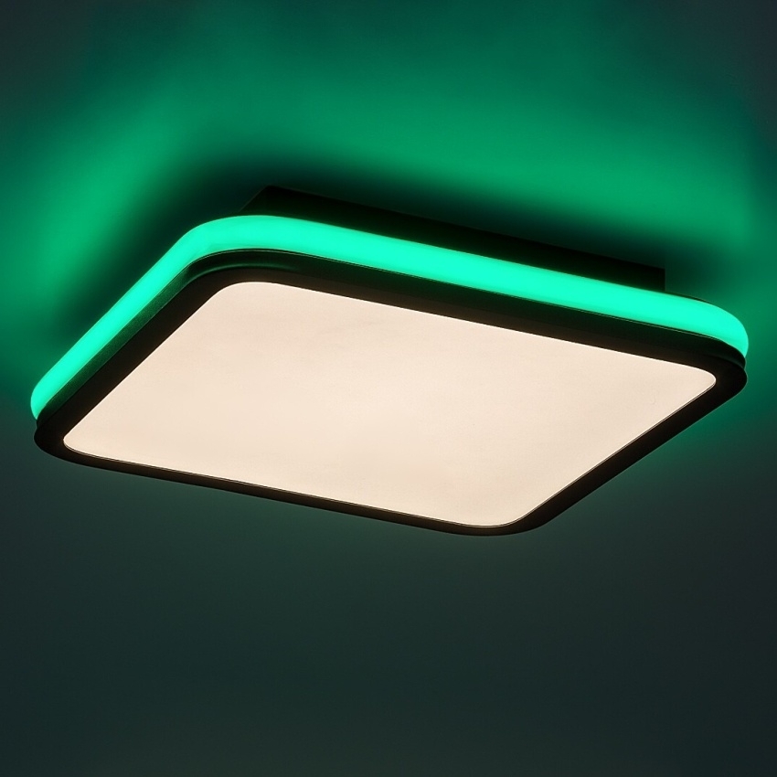 Stropní svítidlo Rabalux Serkan představuje chytré řešení pro moderní interiéry, kde se spojuje elegantní design s vysokou funkčností. Je vyrobeno z kovu v černé barvě a doplněno bílým plastovým stínidlem. Svítidlo má čtvercový tvar se zaoblenými rohy a po jeho obvodu je umístěný dekorativní RGB světelný pásek, který lze zapínat samostatně. Vestavěný LED zdroj s výkonem 43 W umožňuje plynule měnit teplotu barev v rozsahu 3000–6500 K i regulovat jas pomocí dálkového ovládání nebo nástěnného vypínače. K dispozici je také funkce paměti pro pohodlné opakované použití. Díky kombinaci vysoké svítivosti, úsporného provozu a moderního designu je ideální pro obývací pokoj, jídelnu nebo ložnici.