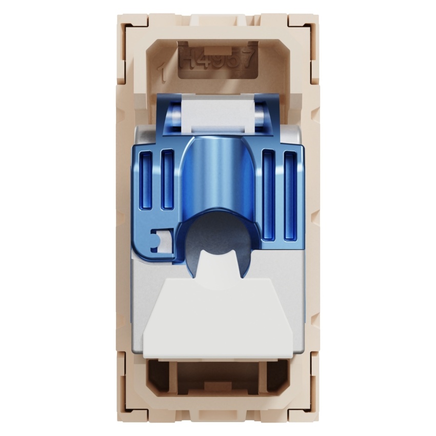 Data socket, New Unica, mechanism, RJ45, STP, straight, click, shuttered, beige