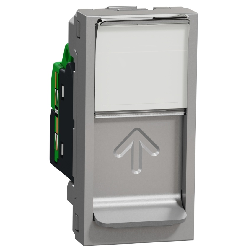 Data socket, New Unica, mechanism, RJ45, U/UTP, straight, click, shuttered, aluminium