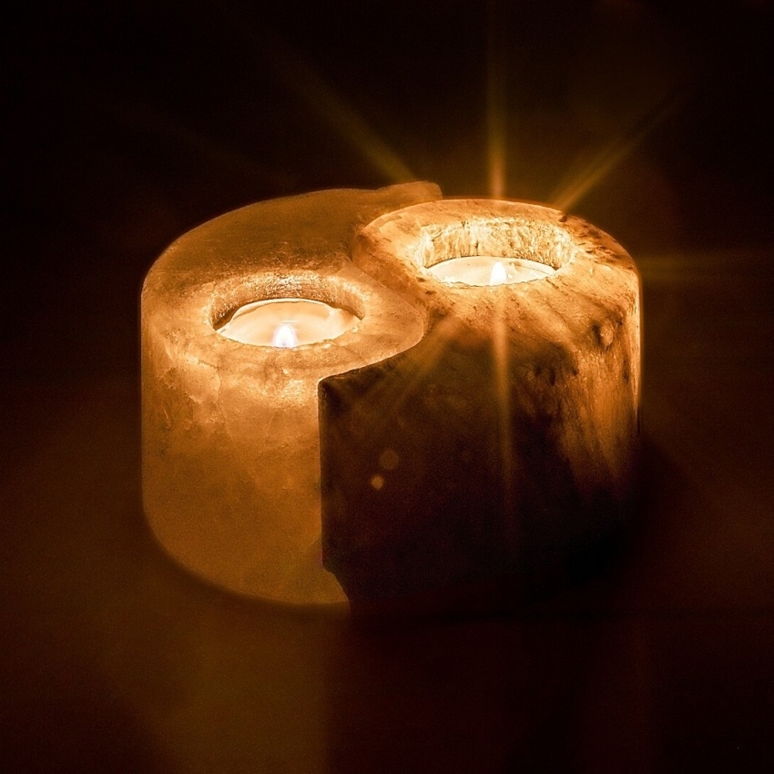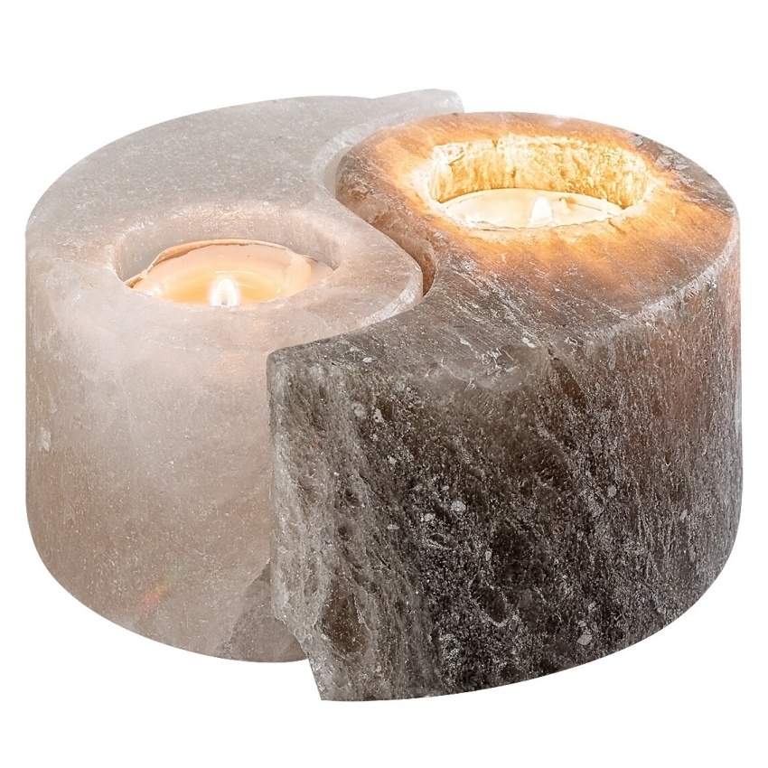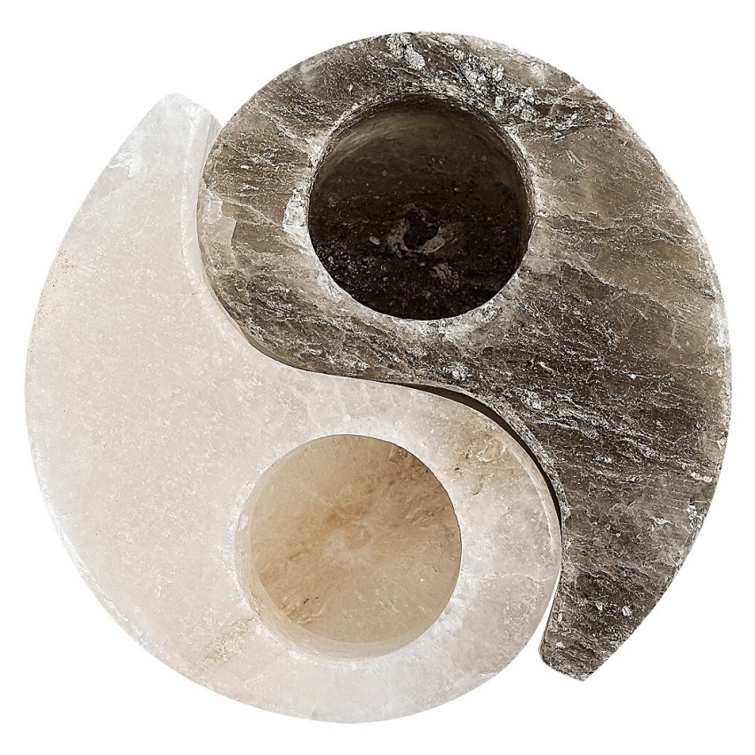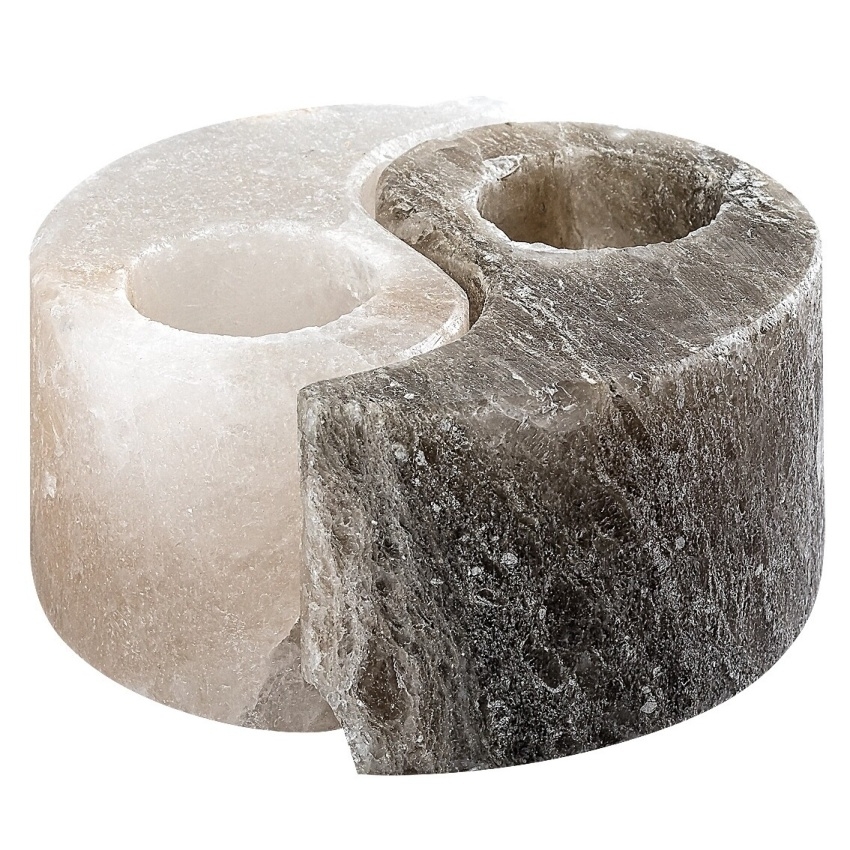 Svícen Rabalux Soluna je doporučen těm, kteří mají rádi útulná dekorativní svítidla z přírodních materiálů. Stolní lampa je vyrobena z kamenné soli v černo-bílé barevné kombinaci a má tvar symbolu jin-jang. Svícen lze umístit do různých místností vašeho domova – skvěle doplní osvětlení ložnice, obývacího pokoje, jídelny nebo i koupelny. Co může být příjemnější než večeře při svíčkách v klidném prostředí domova nebo relaxační koupel s hudbou a jemným světlem? Stolní svícen pojme dvě čajové svíčky.