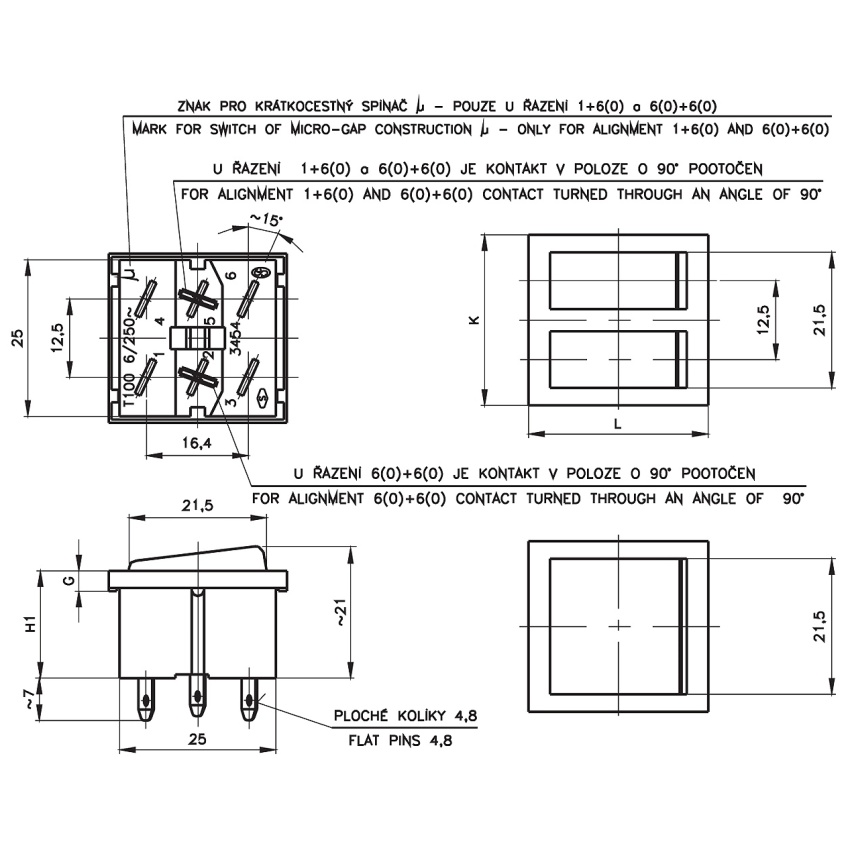 DESKO 3654-02615 Vypínač dvoupólový vestavný kolébkový 16A/250V