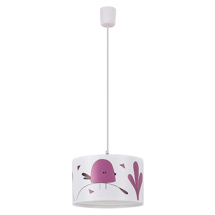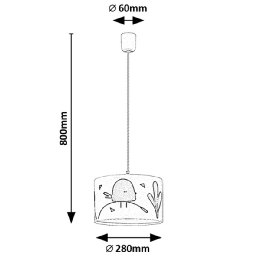 Rozkošné závěsné svítidlo Rabalux Fowly je ideální volbou pro dětský pokoj, kde vnese do prostoru hravost a příjemnou atmosféru. Bílé plastové tělo doplňuje látkové válcovité stínítko zdobené fialovým motivem ptáčka, který působí vesele a přátelsky. Svítidlo poskytuje měkké a příjemné světlo, které je ideální pro každodenní činnosti i klidné usínání. Lze jej použít s jednou žárovkou s paticí E27 a maximálním příkonem 40 W (zdroj není součástí balení). Doporučuje se použít žárovku s teplým bílým světlem pro vytvoření útulného prostředí.