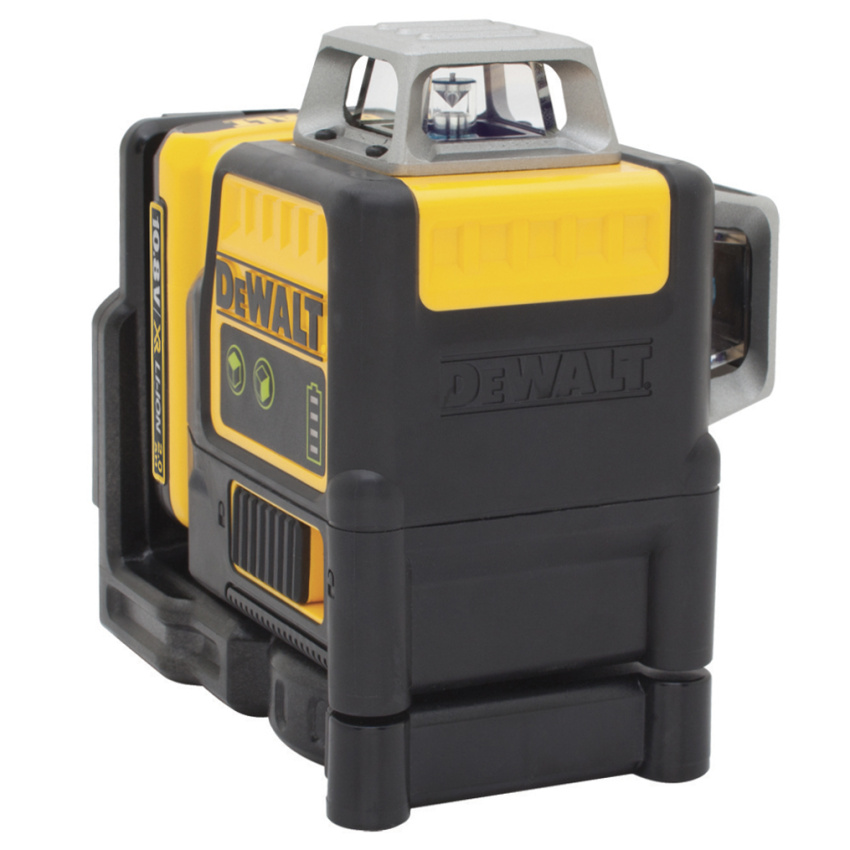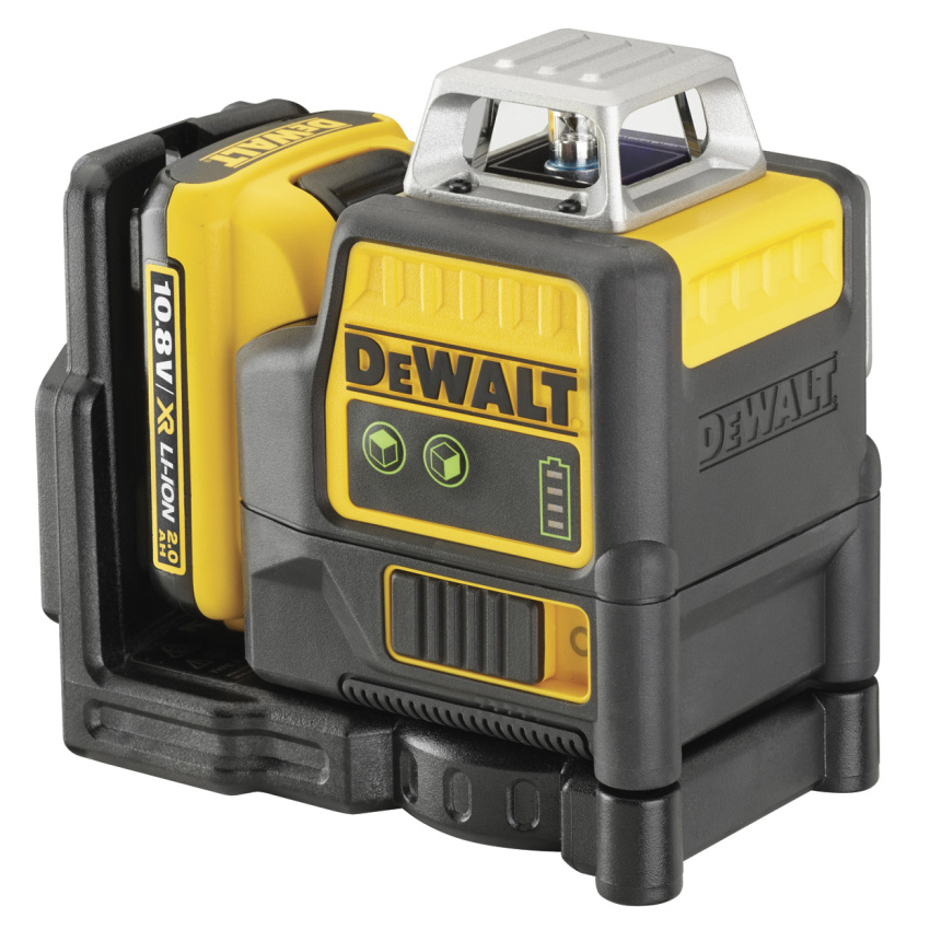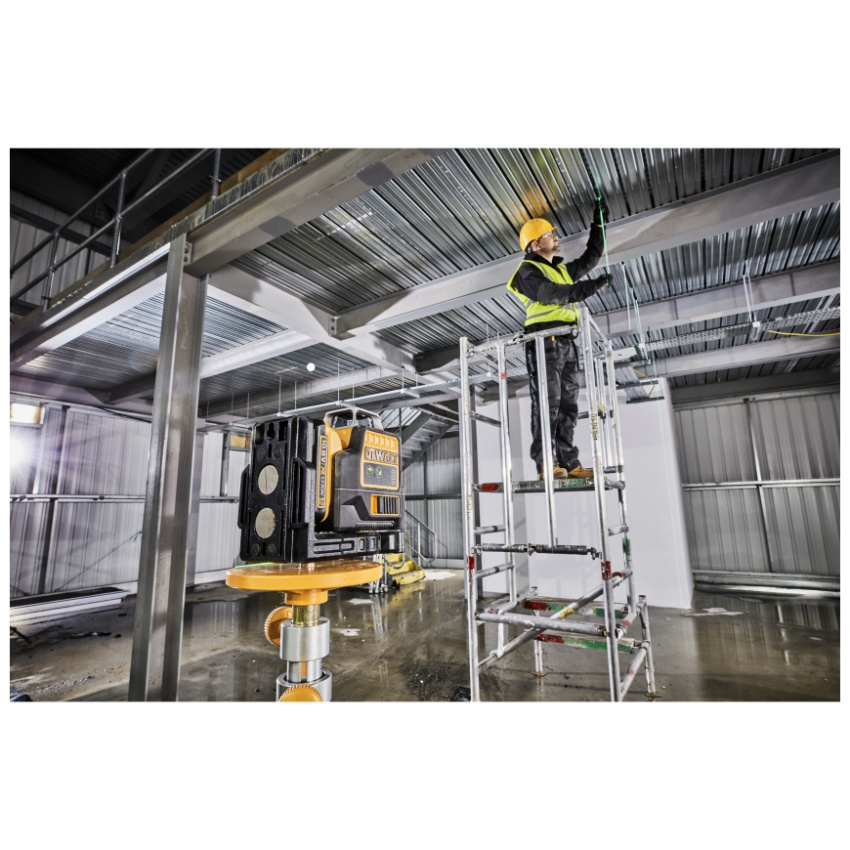 Samonivelační křížový laser se zelenými paprsky 2 x 360° DeWALT DCE0811D1G, který simuluje funkci rotačního laseru.