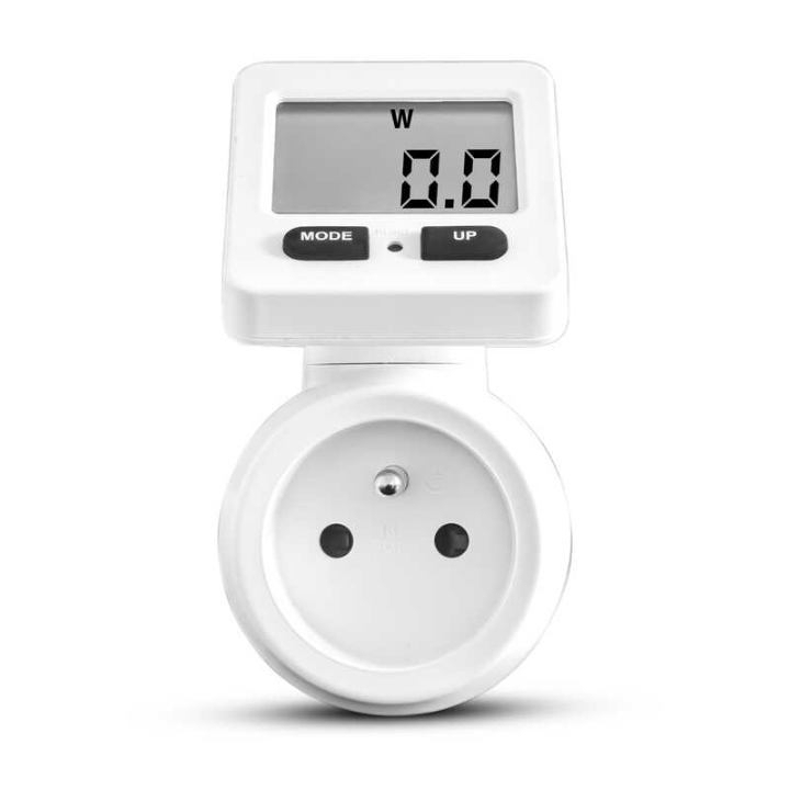 Měřič spotřeby energie EMF-2 od značky Elektrobock nabízí otočný displej s větší úhlopříčkou pro lepší přehlednost. Měří spotřebu energie v rozmezí od 2 W do 3680 W.