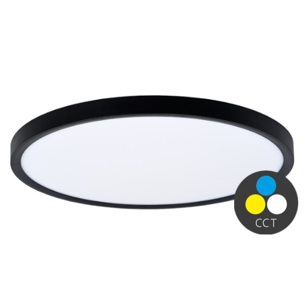 Stropní LED svítidlo SALY s černým lemem nabízí výkon 32 W, světelný tok 3840 lm a možnost nastavení teploty chromatičnosti 3000/4000/6000 K.