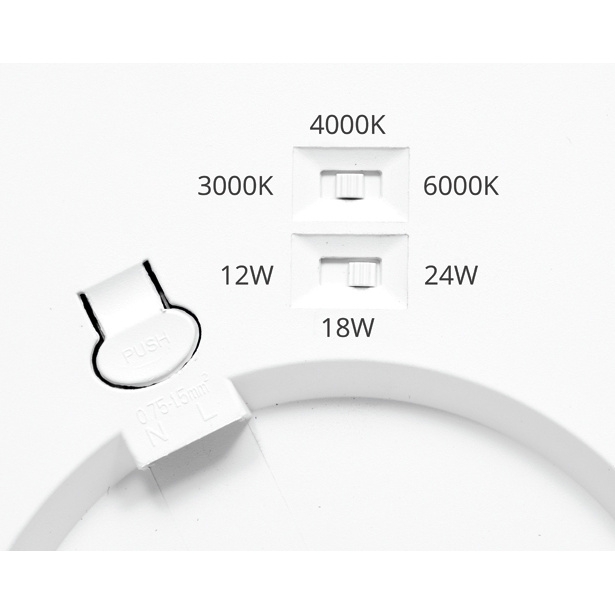 Rozměry - ? 22,5 x 1,7cm# Vstupní napětí [V] - 220-240# Max. výkon [W] - 6-18# Pohybový senzor - ne# Barva světla - nastavitelná# Teplota chromatičnosti [K] - 3000/4000/6000# Materiál - plast# Barva produktu - bílá# Stupeň krytí IP - 20# Třída ochrany - II# Index podání barev [Ra] - 80# Světelný tok [lm] - 1880# Vyzařovací úhel [°] - 120# Typ zdroje - LED SMD# Životnost [h] - 30000#
