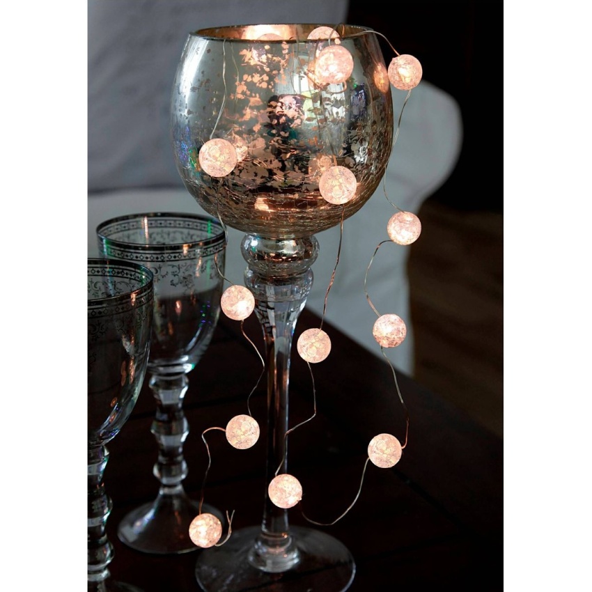 Světelný řetěz DEW DROP LED se skládá z 15 bílých plastových kuliček, které byly navlečeny na 1,4 metru dlouhý drát.