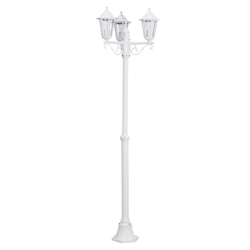 Cestovní svítidlo LATERNA 5 ve stylu lucerny má tělo z bílého litého hliníku a tři hlavy s čirými skleněnými tabulemi. Venkovní sloupové svítidlo je vhodné pro venkovní použití díky krytí IP44 proti stříkající vodě. Díky svému klasickému designu se sloupové světlo hodí do venkovních prostor se širokou škálou stylů a poskytuje osvětlení, které se hodí do prostředí, jako jsou městské vily v tradičním stylu nebo secesní. Vyobrazené žárovky nejsou součástí balení. Výrobek měří 192 cm a má objímky E27 vyžadující žárovky E27.