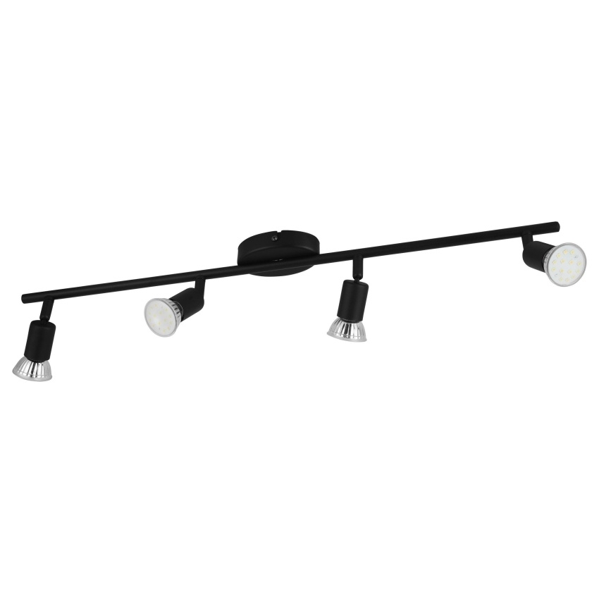 Stropní bodové svítidlo Eglo BUZZ-LED se čtyřmi pohyblivými reflektory a LED žárovkami GU10 v balení.
