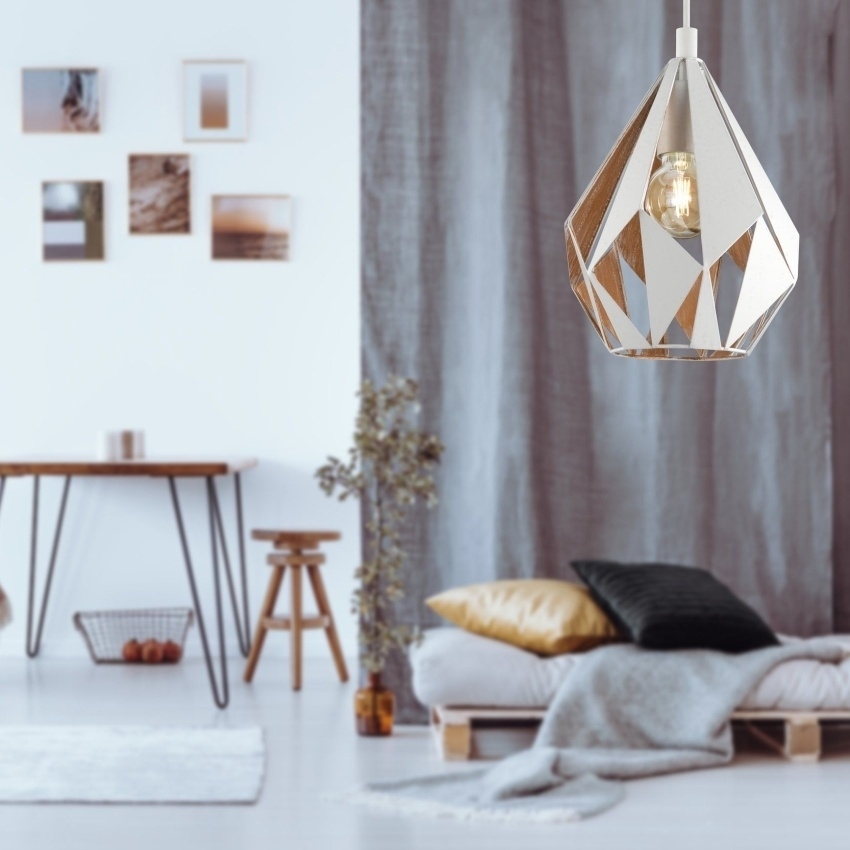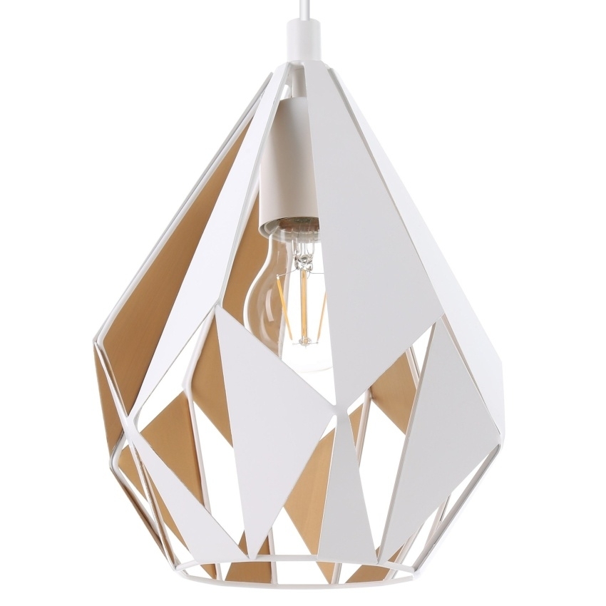 Moderní závěsné svítidlo Eglo CARLTON 1 v bílé a zlaté barvě s kovovým stínidlem, ideální pro elegantní osvětlení interiéru.