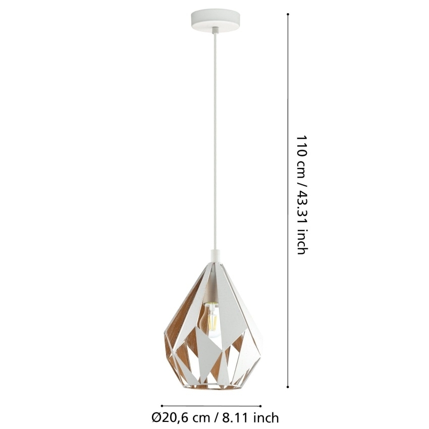 Závěsné svítidlo EGLO CARLTON 1 je stylovým doplňkem do ložnice, jídelny, obývacího pokoje nebo vstupní haly. Kovové stínidlo v bílé barvě z vnější strany a medově zlaté z vnitřní strany vytváří krásný světelný efekt, kdy se světlo odráží od zlatých ploch a jemně prosvítá otvory ve stínidle. Svítidlo je určeno pro žárovku s paticí E27 o maximálním výkonu 60 W, která není součástí balení. Díky svému modernímu a elegantnímu designu vnese do interiéru nádech luxusu.
