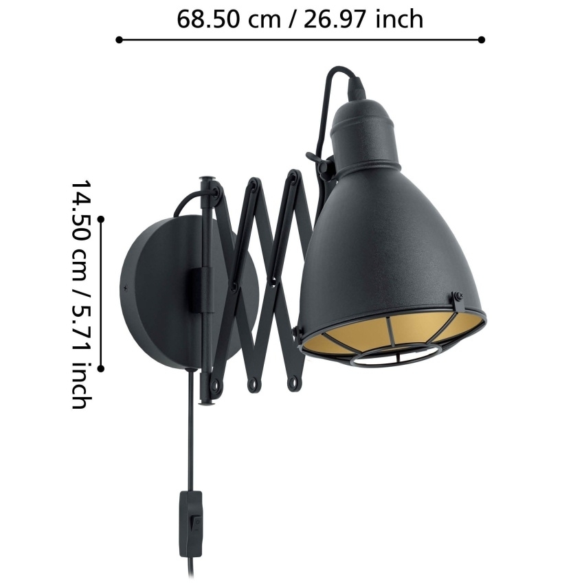 Nástěnné svítidlo EGLO TREBURLEY je praktickým a stylovým doplňkem interiéru v industriálním designu. Díky výsuvnému ramenu typu harmonika lze svítidlo natáhnout až do délky 65 cm a optimálně nasměrovat světlo. Hlava svítidla je pohyblivá, což zajišťuje maximální flexibilitu při osvětlení pracovní plochy, stolku, sedačky či postele. Ovládání je jednoduché díky kolébkovému vypínači umístěnému na přívodním kabelu. Svítidlo je určeno pro jednu žárovku s paticí E27 a maximálním příkonem 28 W.