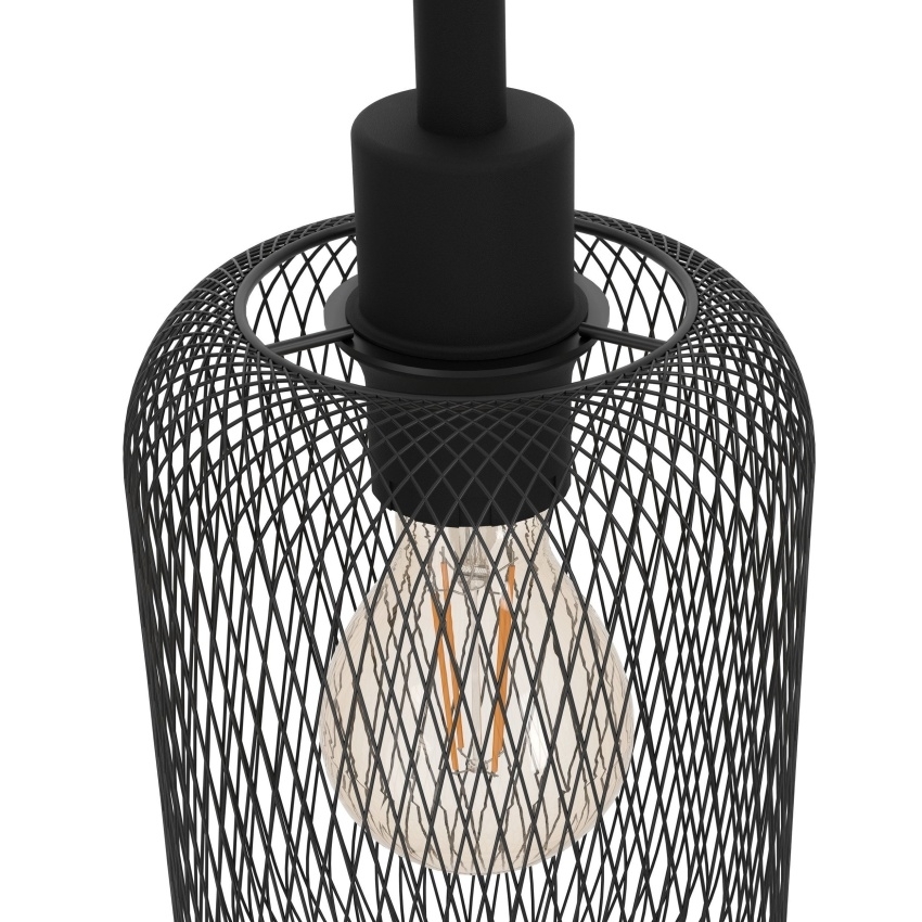 Závěsné svítidlo Eglo WRINGTON z černého kovu se třemi paticemi E27, délka 74 cm.