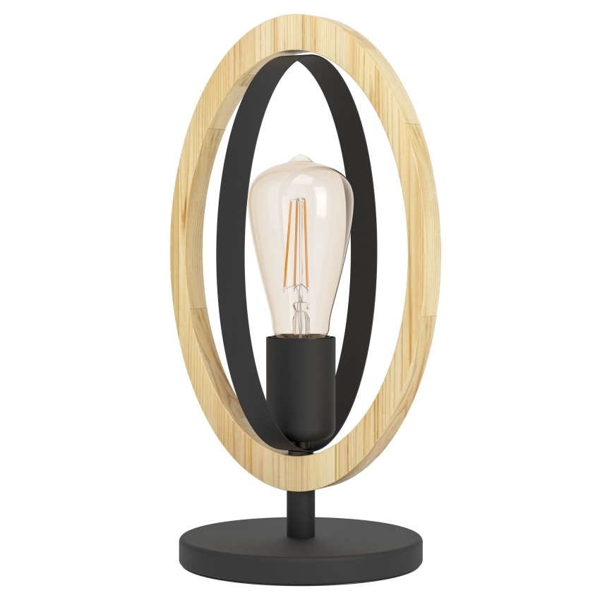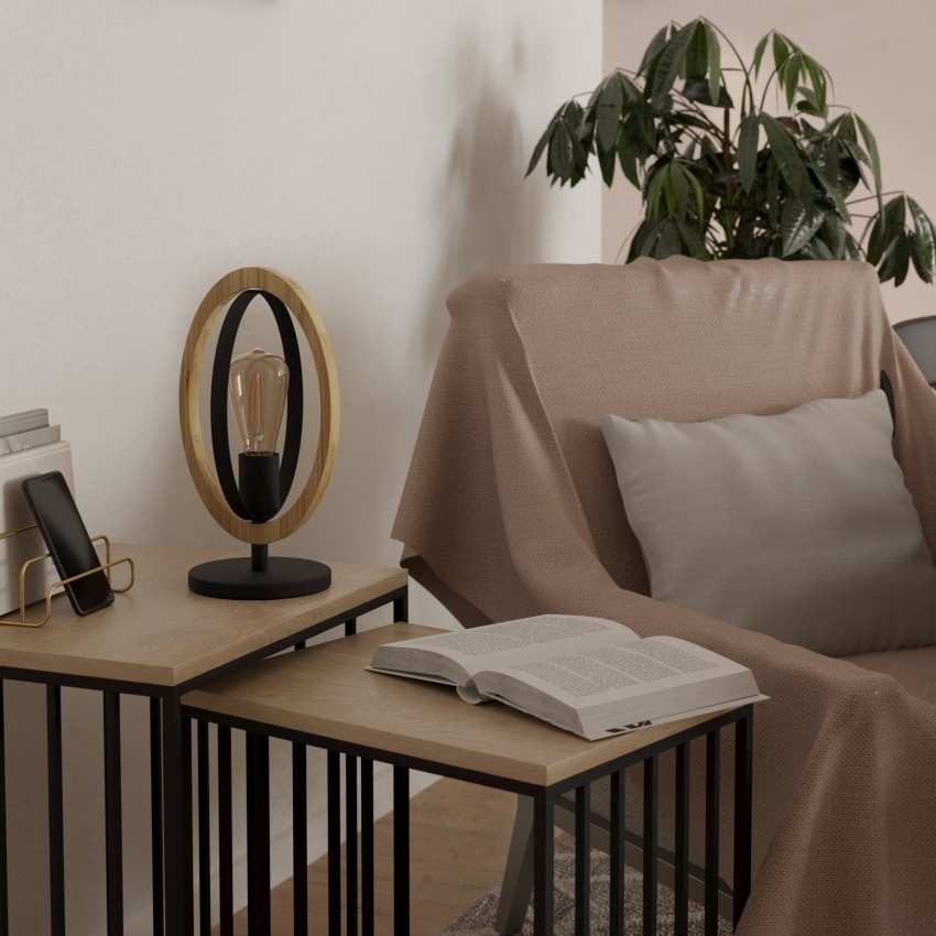 Elegantní stolní svítidlo Eglo BASILDON z černého kovu a hnědého dřeva s paticí E27.