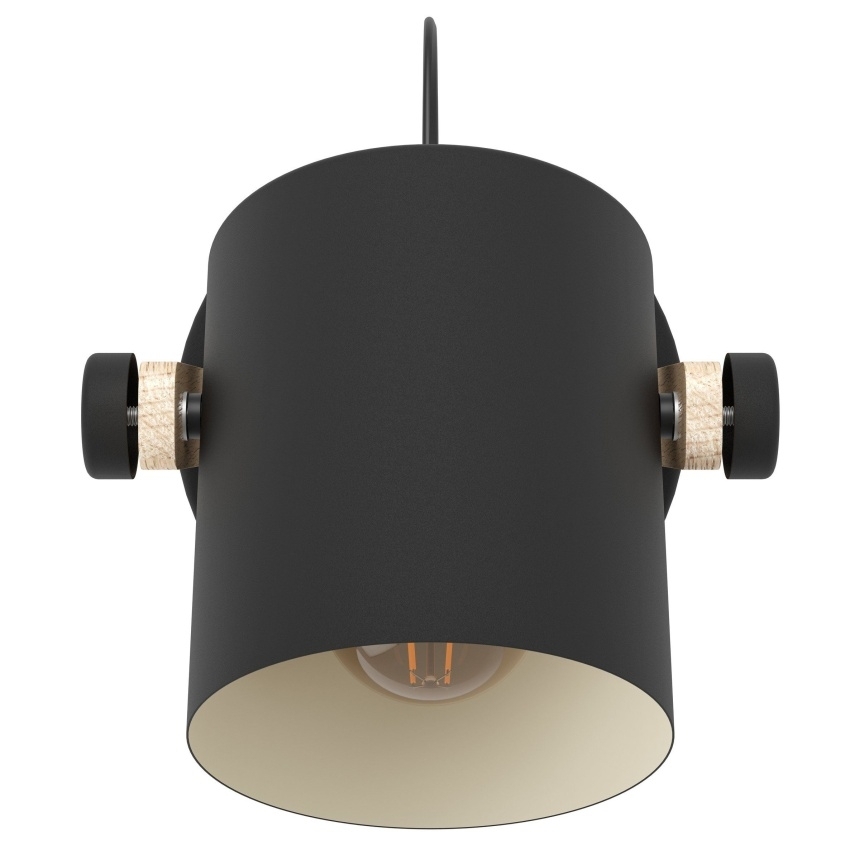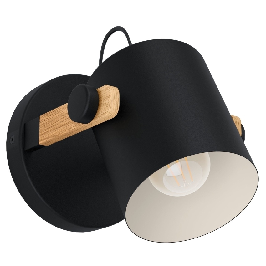 Nástěnné svítidlo Eglo HORNWOOD v kombinaci černého kovu, krémového prvku a přírodního borovicového dřeva.