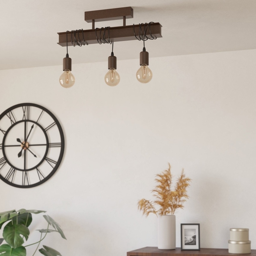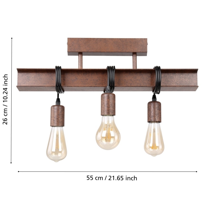Stropní svítidlo EGLO TOWNSHEND 4 v industriálním stylu zaujme jednoduchým designem v antické hnědé barvě. Díky dlouhým kabelům lze každou žárovku spustit do jiné výšky a vytvořit tak originální světelný efekt. Hodí se do kuchyně, jídelny, obývacího pokoje, ložnice či pracovny a skvěle doplní také vstupní halu, chodbu nebo schodiště. Žárovky s paticí E27 nejsou součástí balení.