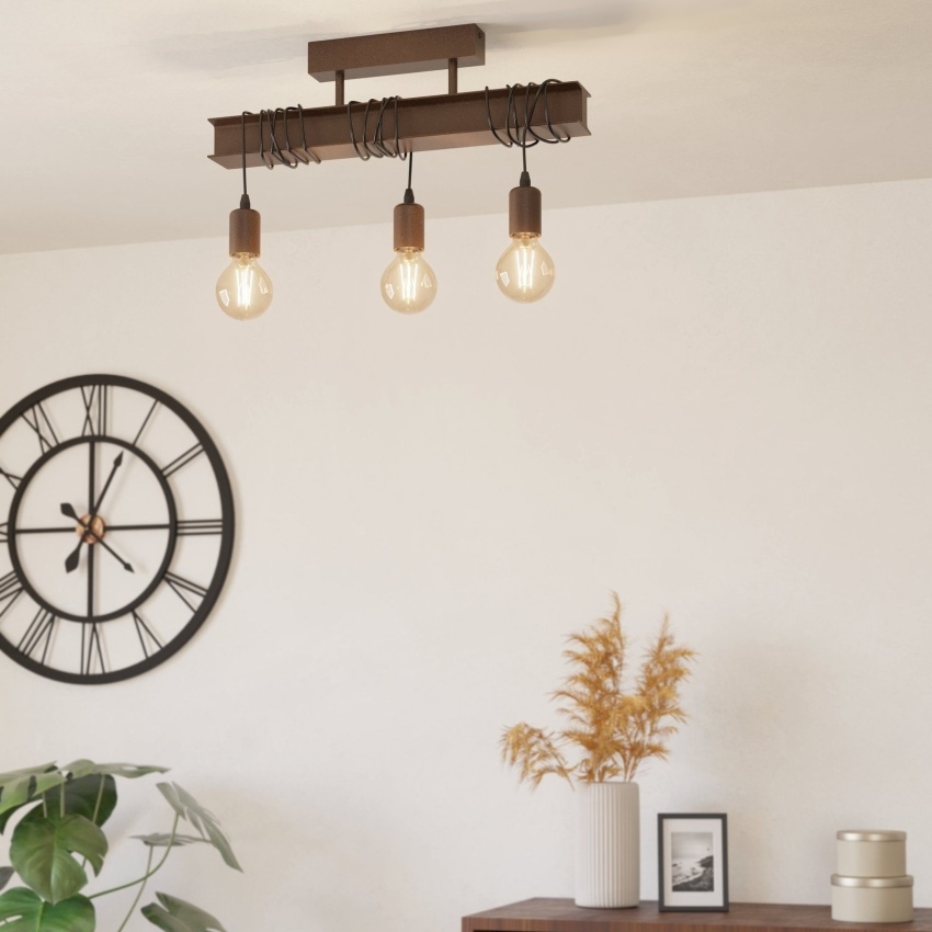 Stropní svítidlo Eglo TOWNSHEND 4 v antické hnědé barvě s možností variabilního zavěšení žárovek.