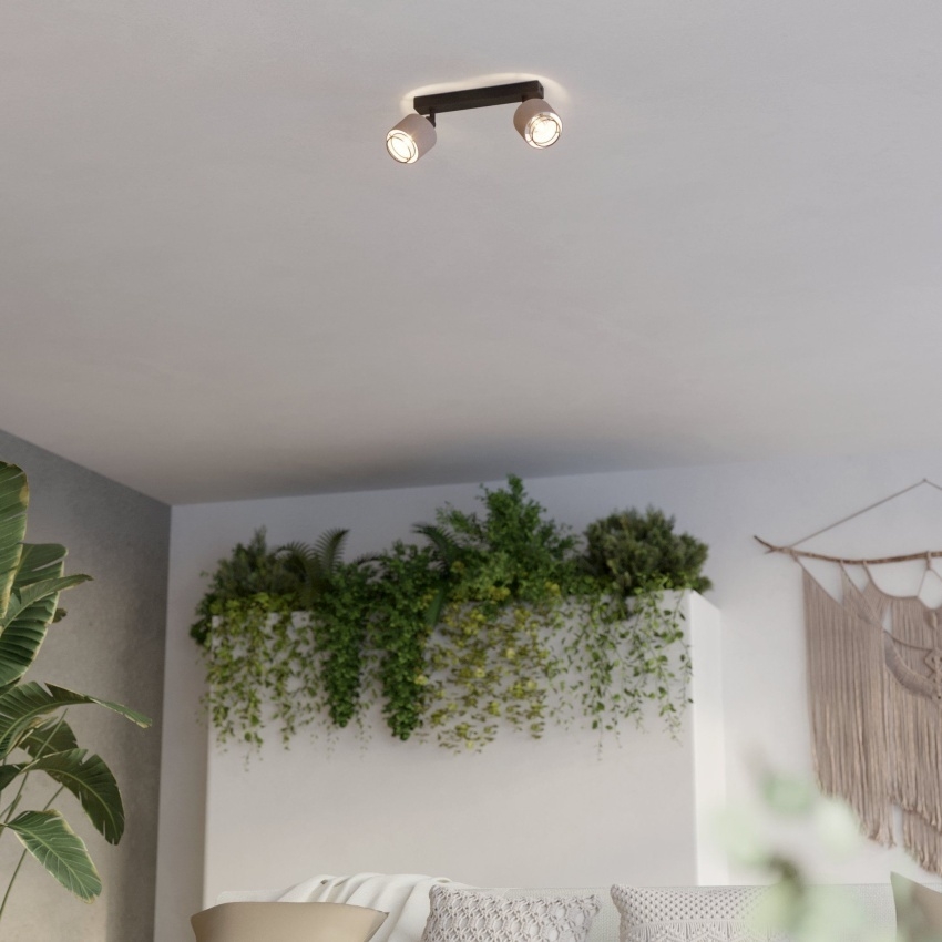 Stropní bodové svítidlo EGLO ROSLEY zaujme kombinací černé kovové konstrukce a přírodních textilních stínidel z lnu. Dvě pohyblivé hlavy umožňují nastavení směru světla podle vašich potřeb, ať už pro čtení, práci, nebo pro vytvoření příjemné atmosféry. Hodí se do obývacího pokoje, ložnice, chodby nebo pracovny. Žárovky nejsou součástí balení, doporučená patice E14 s max. výkonem 40 W.