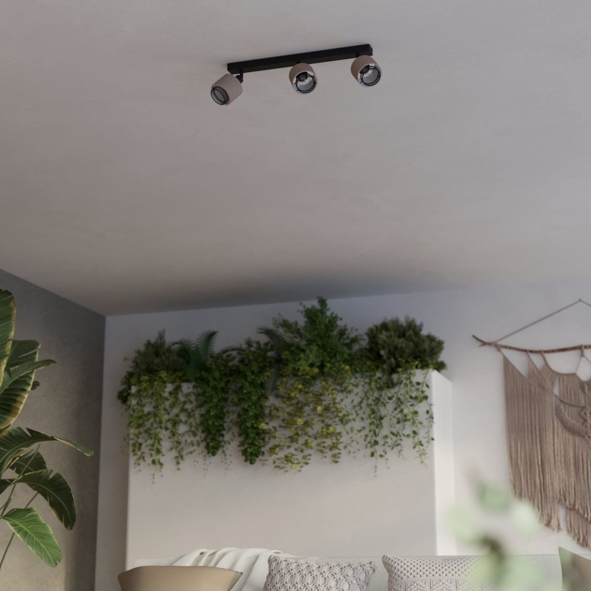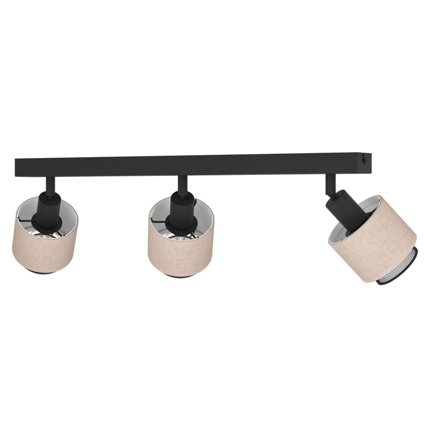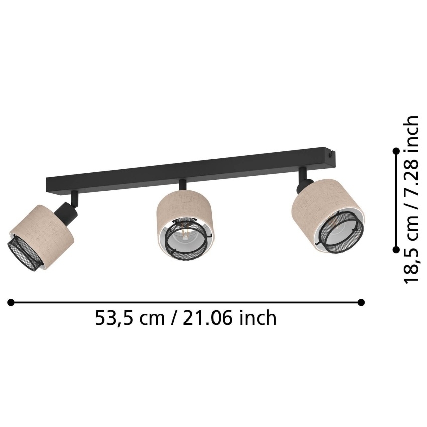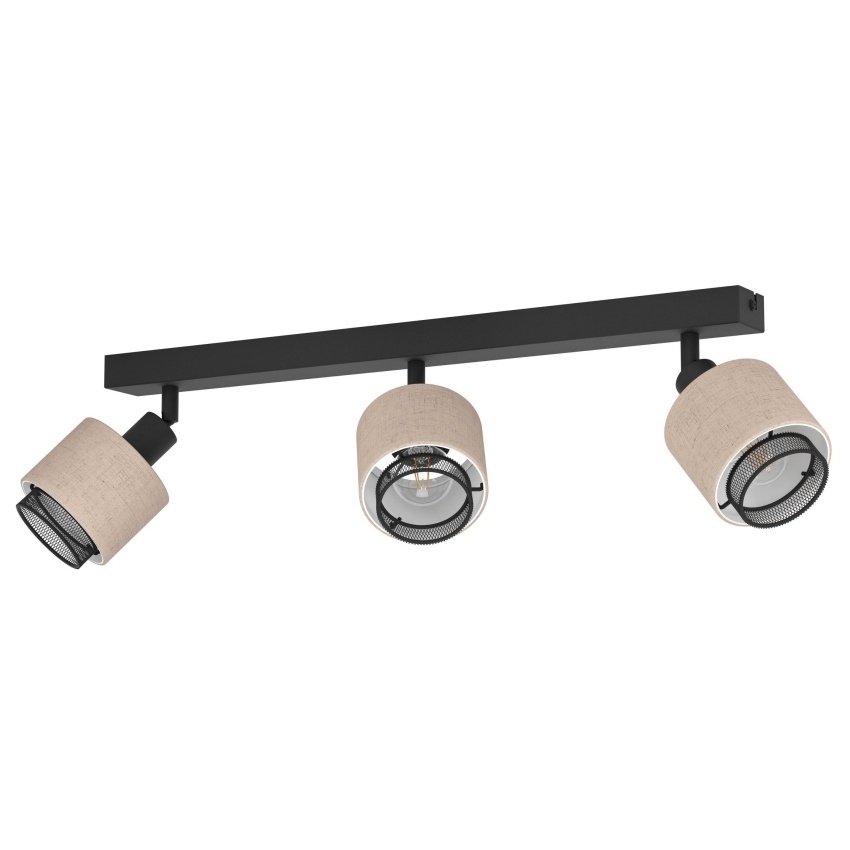 Stropní bodové svítidlo EGLO ROSLEY kombinuje elegantní černý kov s přírodními textilními stínidly z lnu. Tři samostatně nastavitelné hlavy umožňují nasměrování světla tam, kde je potřeba – například nad pracovní plochu, jídelní stůl či do obývacího pokoje. Svítidlo dodá interiéru příjemnou atmosféru a hodí se i do ložnice, haly nebo chodby. Žárovky nejsou součástí balení, doporučená patice E14 s max. výkonem 40 W.