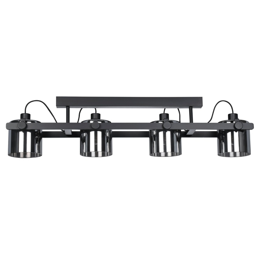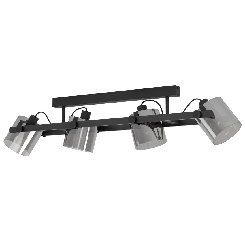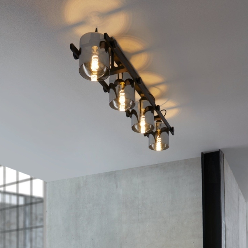Stropní svítidlo EGLO HORNWOOD 2 se čtyřmi nastavitelnými hlavami a stínidly z kouřového bublinkového skla, ideální pro moderní interiéry.