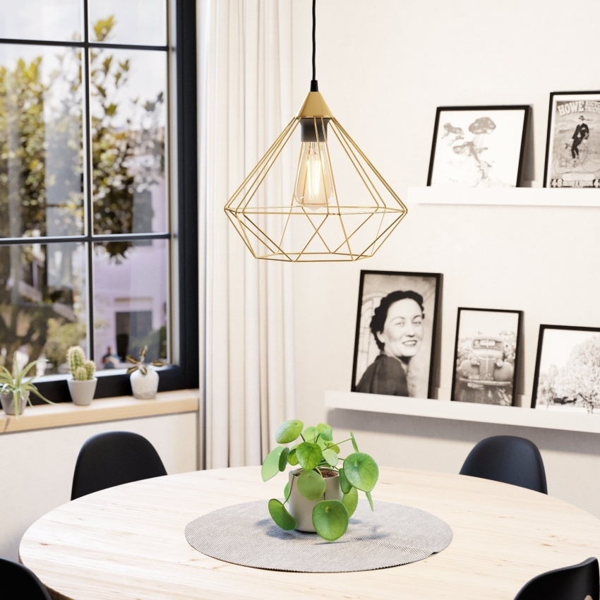 Elegantní závěsné svítidlo EGLO TARBES se zlatým kovovým stínidlem, které zaujme svým originálním designem a proměnlivým vzhledem dle použité žárovky.