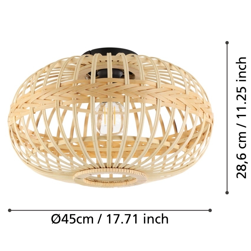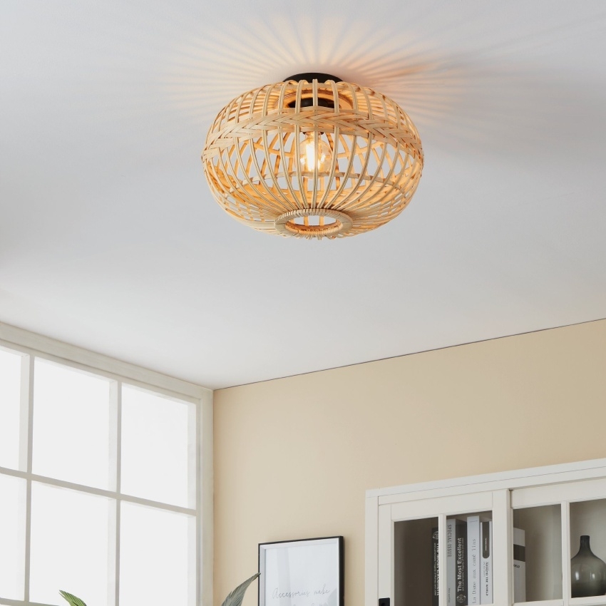 Stropní svítidlo EGLO AMSFIELD s proutěným bambusovým stínidlem v přírodní hnědé barvě pro útulnou atmosféru interiéru.