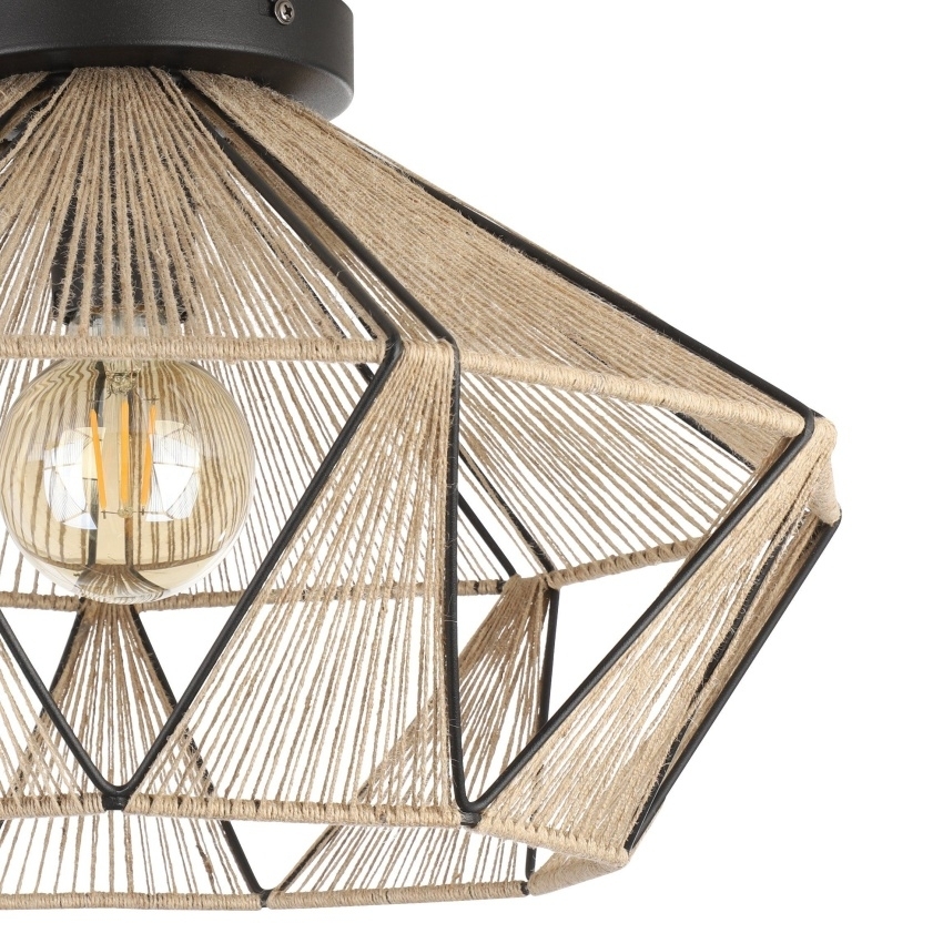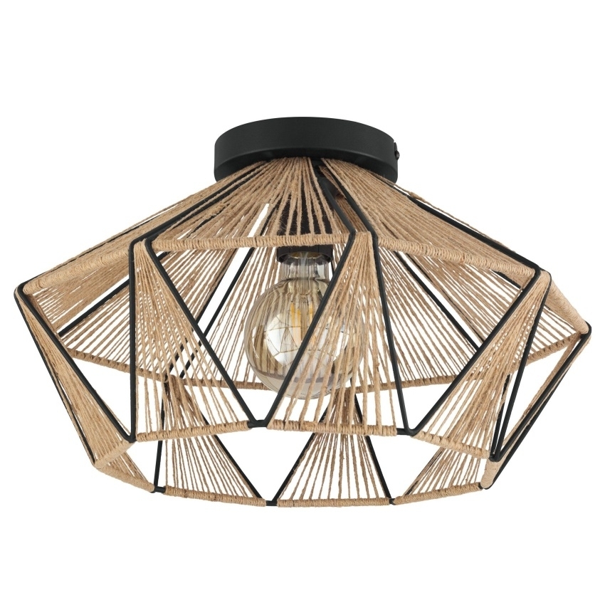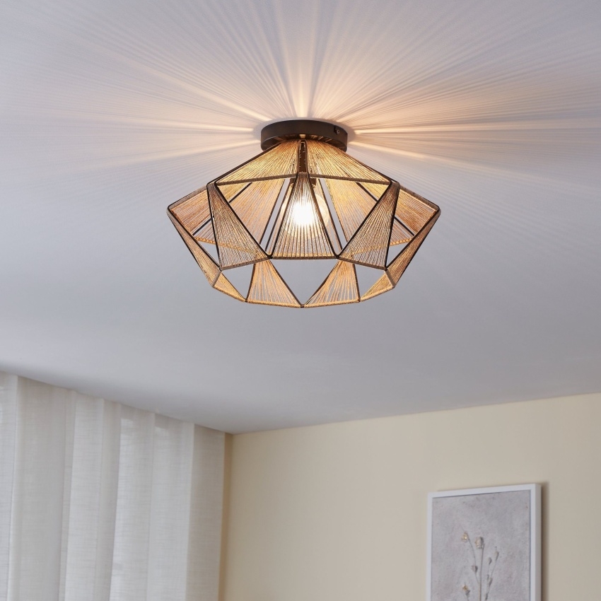 Stropní svítidlo EGLO ADWICKLE zaujme svým originálním designem kombinujícím moderní styl a přírodní prvky. Jemné černé kovové stínidlo ve tvaru diamantu je omotané konopnou přízí v přírodní barvě, která vytváří po rozsvícení jedinečný světelný efekt. Toto svítidlo je ideální volbou pro osvětlení obývacího pokoje, kuchyně, ložnice či chodby. Lze jej osadit libovolnou žárovkou s paticí E27 podle preferencí uživatele. Žárovka není součástí balení.