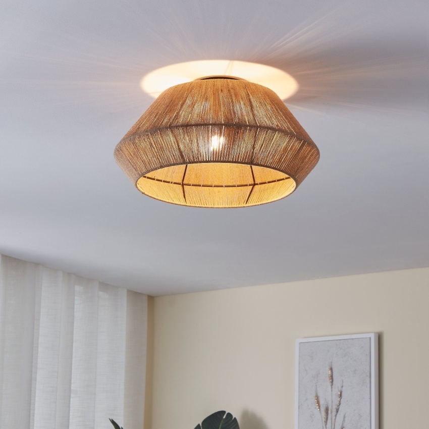 Stropní svítidlo EGLO ALDERNEY kombinuje moderní design a přírodní materiály. Drátěné stínidlo ve tvaru diamantu je omotáno konopnou přízí v přírodním odstínu, což dodává svítidlu originální vzhled a vytváří příjemnou atmosféru v místnosti. Hodí se do obývacího pokoje, ložnice, kuchyně či předsíně. Svítidlo je kompatibilní se žárovkami s paticí E27 a díky svému designu se stane výrazným doplňkem vašeho interiéru. Žárovka není součástí balení.