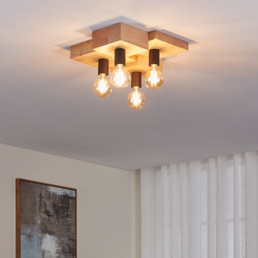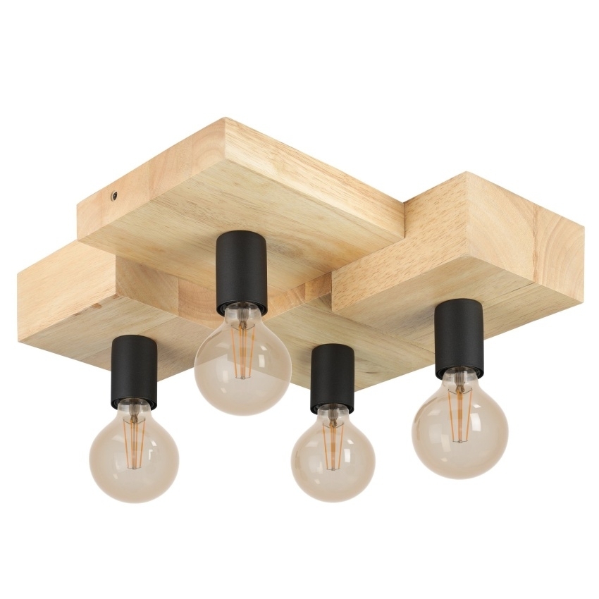 Stropní svítidlo EGLO HALKIN s dřevěnými prvky a čtyřmi objímkami pro stylové osvětlení interiéru.